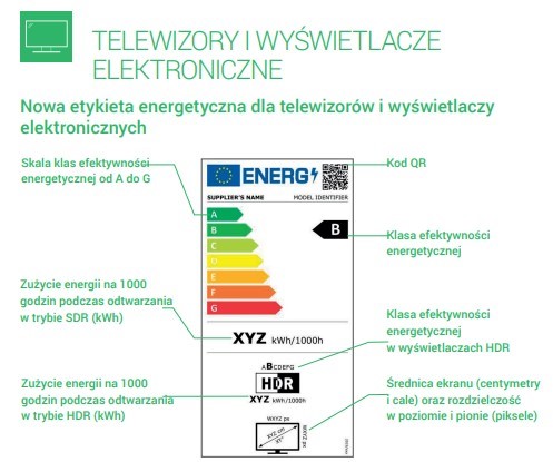 Nowe etykiety dla telewizorów zawierają poniższe informację: